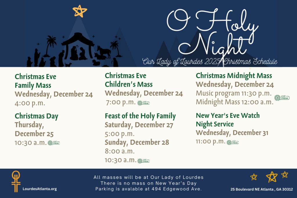These words are the cornerstone of expanding and growing our church. They have been the guiding creed for the mission of Our Lady of Lourdes to serve metro Atlanta and beyond since 1912.